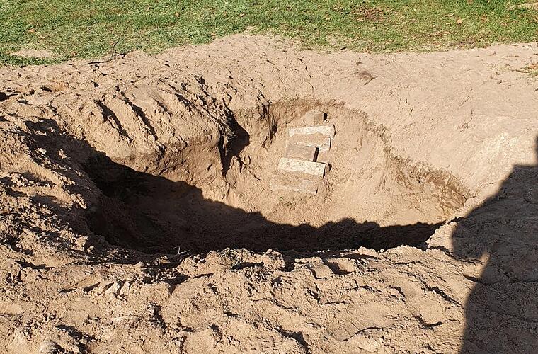 Das Loch wurde übrigens ziemlich schnell wieder gefüllt, aus Sicherheitsgründen, wie Wiesentheids Bauhofleiter Stefan Schön erläutert. Zwei große Radlader-Schaufeln voller Sand waren dazu nötig.
