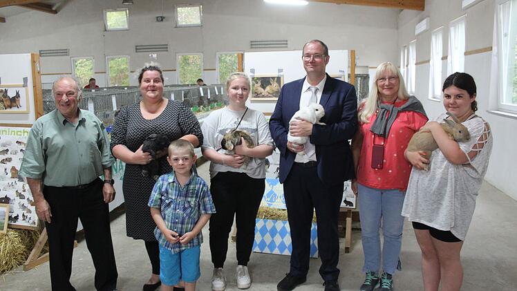 Großlangheims Bürgermeister Peter Sterk freute sich bei der Eröffnung der 20. Landesjugendjungtierschau der bayrischen Rassekaninchenzüchter am Samstagnachmittag auf dem Gelände des Großlangheimer Kleintierzuchtvereins darüber, dass nach der Corona-Zwangspause wieder eine Schau zustande kam. Bei Blitz und Donner und dem lange ersehnten kräftigen Regenguss verlieh der Schirmherr der Veranstaltung in der Ausstellungshalle des Vereins auch seiner Freude darüber Ausdruck, dass die Veranstaltung Zuchtfreunde und Züchternachwuchs aus nah und fern zusammen führte und auch das traditionelle Sommerfest am Sonntag das Interesse an Kaninchen und Federvieh stärkte.