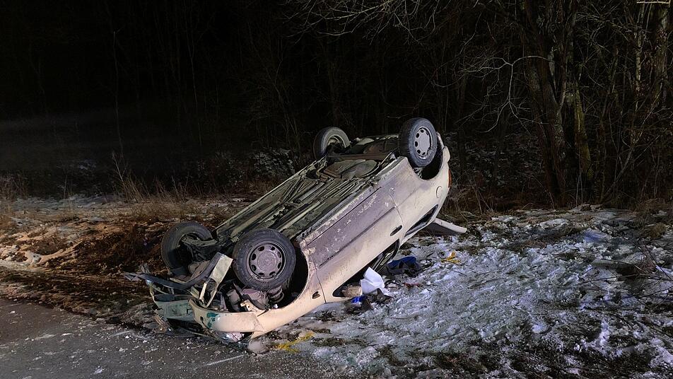 Am Montagabend, etwa gegen 20:30 Uhr, fuhr ein 79-Jähriger aus dem Landkreis Kitzingen mit seinem Pkw auf einem Flurbereinigungsweg vom Sandberg in Richtung Wüstenfelden. Laut Polizeibericht kam der Senior aus noch ungeklärter Ursache mit seinem Fahrzeug von der Fahrbahn ab und kam erst auf dem Dach zum Liegen.