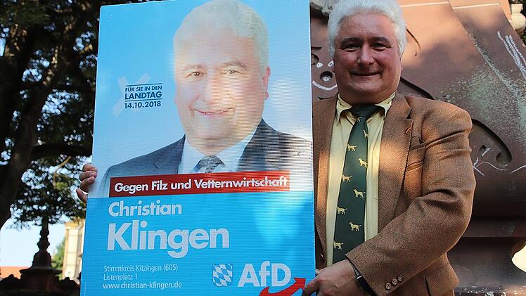 Der heute 53-Jährige fand Gefallen daran, mitzureden. Er sah seine Chance, die Dinge mitzubestimmen. Er und die neugegründete Partei – das passte irgendwie. Im Kreisverband Kitzingen-Schweinfurt übernahm Klingen als Vorsitzender das Ruder. Gleichzeitig engagierte er sich im Bezirksverband Unterfranken, dessen Vorsitz er 2016 übernahm. Außerdem ist er seit diesem Jahr Mitglied im Landesvorstand Bayern. Kurzum: Er macht Karriere und schickt sich an, Berufspolitiker zu werden.