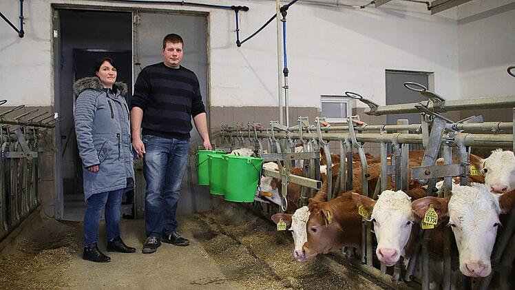 Tiere, um die er sich kümmern muss, hat Matthias Blank genug: Etwa 200 Kälber und 400 Mastschweine stehen in den Ställen des erst 28-jährigen Jungbauern. Spezialisiert hat er sich auf die Fresseraufzucht – als einziger Landwirt im Landkreis. Dazu kauft er männliche Kälber, zieht sie auf und verkauft sie dann an Bullenmäster.