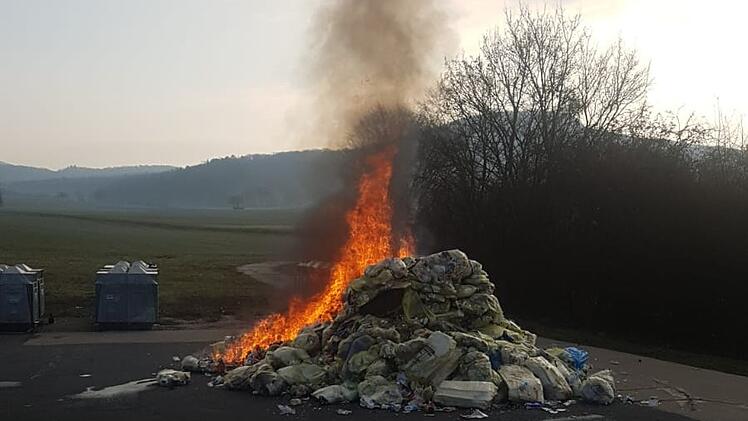 Ein lauter Schlag hat den Fahrer eines Mülllasters am Donnerstagmorgen in Iphofen darauf aufmerksam gemacht, dass etwas mit seiner Ladung nicht stimmen kann. Der Laster transportierte Gelbe Säcke, die mit einer Müllpresse zusammengedrückt wurden. Dabei ereignete sich der Knall, und die Ladung fing Feuer. So berichtet es Stefan Melber, Kommandant der Iphöfer Feuerwehr, die schnell zur Stelle war.