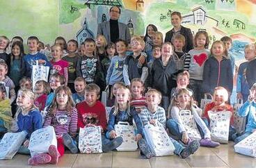 Die Deutsche Akademie für Kinder- und Jugend-literatur und der Ravensburger Verlag machten den Erstklässlern der Grundschule Volkach ein besonderes Geschenk. Wie in den vergangenen Jahren überreichten Akademiemitglieder Lesetüten zur Einschulung.