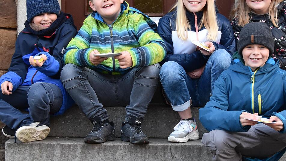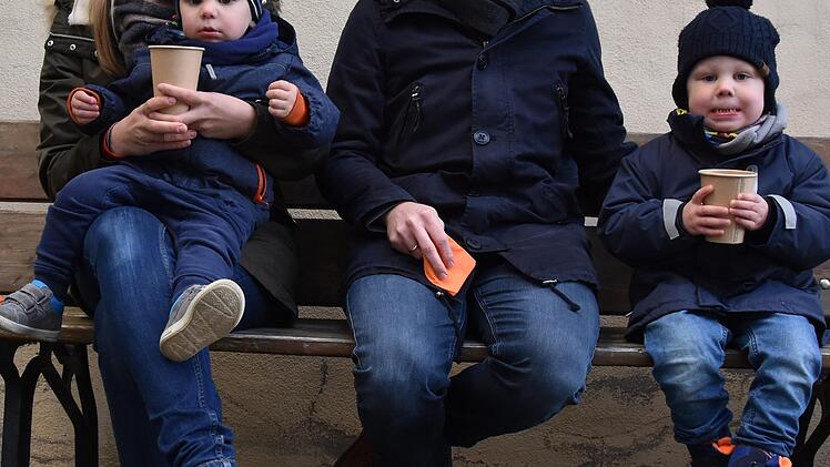 Familie Laugsch sitzt winterlich gekleidet auf einer Bank im Städtchen und genießt den warmen Kakao. Max, Jonas, Hannah, Sophia und Luis tollen gut gelaunt um den Stadtbrunnen, weil das Geocashing – die Schatzsuche mit "Ritter Heinrich" – so viel Spaß gemacht hat. Noch scheint sogar die Sonne, aber alle warten darauf, dass es dunkel und dann noch charmanter wird im Städtchen.