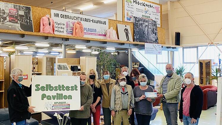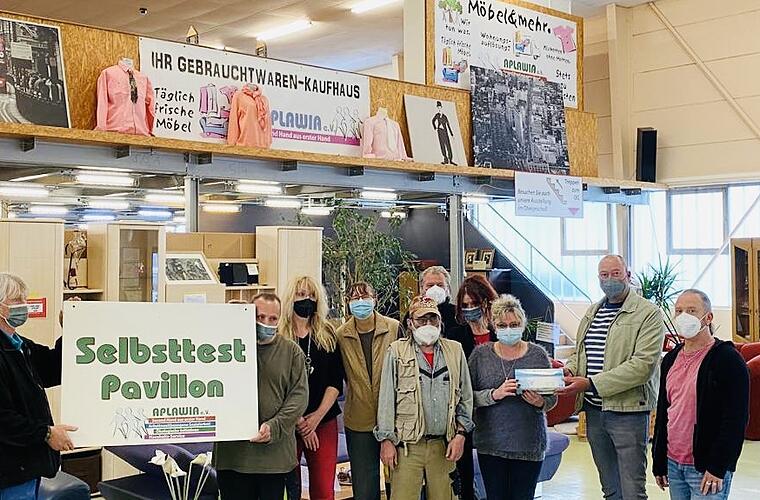 Sehr gefreut hat sich Aplawia im Kitzinger Lochweg über die Spende des Lions Clubs Kitzingen in Höhe von 500 Euro, teilt der Verein mit. Diese Unterstützung werde vom 1984 gegründeten Sozialverein dringend benötigt, denn die Corona-Einschränkungen führten zu Umsatzeinbußen des Gebrauchtwaren-Kaufhauses und würden durch die erforderlichen Schutzmaßnahmen viel Geld verschlingen. Dabei kann Aplawia als gemeinnütziger Verein auf keinerlei Rücklagen zurückgreifen. Ein Teil des gespendeten Geldes wurde direkt in dringend benötigte Schnelltests investiert. Nachdem ein kurzfristig errichteter „Selbsttest-Pavillon“ vor dem Kaufhaus-Eingang vom Sturm am 4. Mai zerstört wurde, konnte sofort ein von der SDA GmbH zur Verfügung gestellter sturmsicherer Bauwagen als neue Teststation hergerichtet werden. Hier können sich die Kundinnen und Kunden nun selbst testen (erforderlich bei einer Inzidenz zwischen 100 und 150). Der Selbsttest kann entweder mitgebracht oder vor Ort für fünf Euro erworben werden; je nach Einkaufswert gibt es eine Erstattung.