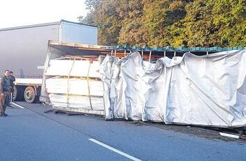 Am Samstagfrüh blockierte ein umgestürzter Lkw-Anhänger die Bundesstraße B 286 zwischen Wiesentheid und Rüdenhausen. Gegen 7 Uhr war das Gespann aus Richtung Schweinfurt kommend zunächst nach rechts von der Fahrbahn abgekommen.