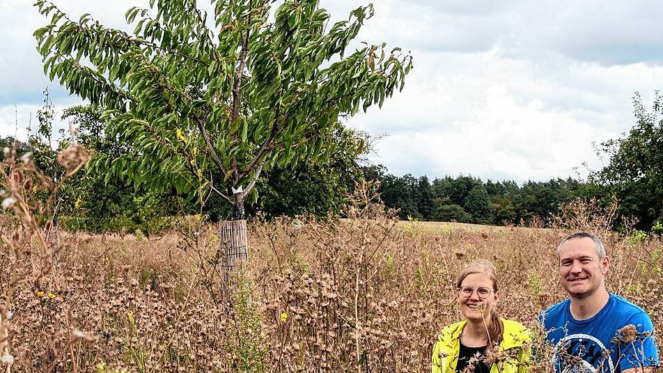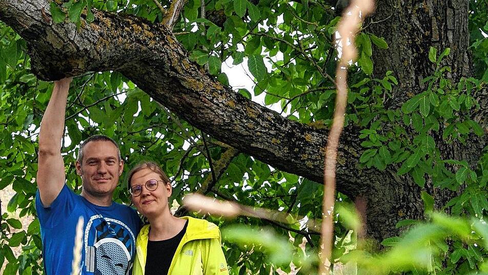 Anna Sophia kann das bestätigen. Allerdings habe in den letzten Wochen das Wasser gefehlt, so dass die Bäume zwar viele Äpfel tragen, sie aber nicht mehr so groß geworden sind. Dem Geschmack tut das natürlich keinen Abbruch. In die Früchte von der Streuobstwiese beißt nicht nur das Besitzerpaar mit gutem Gewissen hinein. In ihrem Fürther Wohnhaus versorgen die 34-jährige studierte Biochemikerin und der aus Dettelbach stammende Maschinenbauer die gesamte Nachbarschaft mit Äpfeln, Zwetschgen und Nüssen. Anna Sophia Feuerbach investiert viel Zeit in die Bewirtschaftung des Grundes, kommt zur Erntezeit jedes Wochenende in ihre alte Heimat. Auch das Mähen und Schneiden macht ihr Freude. Das Paar sieht es als willkommene Abwechslung zur überwiegend sitzenden – und in Anna Sophias Fall auch sehr kommunikativen – Tätigkeit und überlegt gerade, sich entsprechende Maschinen anzuschaffen. „Ich genieße die Ruhe sehr“, sagt die Selbstständige im Bereich psychische Gesundheit lächelnd. „Es ist schön, wenn man einfach mal nicht reden muss.“
