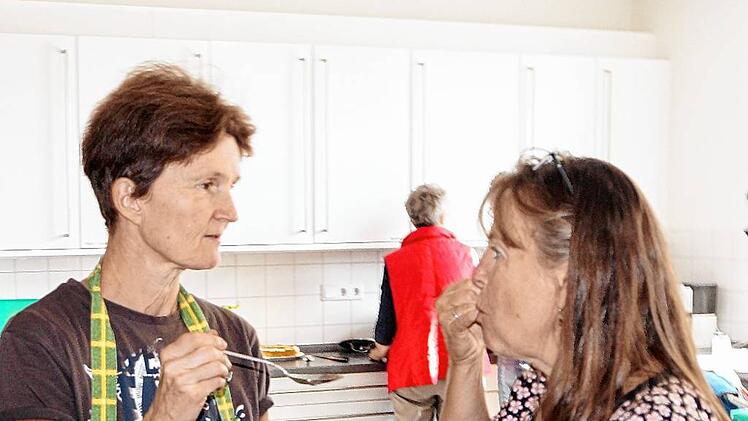 21 Frauen und Männer aus ganz Unterfranken hatten sich in den letzten Monaten regelmäßig mit Kornelia Marzini getroffen und häufig war auch Bianca Scherer vom Verband landwirtschaftliche Fachbildung, der das Seminar veranstaltete, mit von der Partie. Sie hat schnell gemerkt, warum der Kurs für Kräuterführer so etwas wie ein Selbstläufer ist – sehr beliebt und häufig schnell ausgebucht. „Es macht unheimlich viel Spaß, hier mitzumachen“, sagt Bianca Scherer und packt begeistert in der Küche mit an, als es ans Verarbeiten der am Vormittag gesammelten Zutaten geht. Gemeinsam mit anderen Teilnehmern ist sie für die Veilchencreme mit Himbeeren zuständig, gemahlene Alantwurzel ist hier die außergewöhnliche Zutat. Wie viele andere Produkte, mit denen an diesem Tag gekocht wird, hat die Alantwurzel eine heilmedizinische Bedeutung, wird vor allem bei Atemwegsbeschwerden eingesetzt.