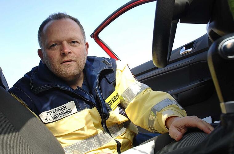 Immer wieder Schreckensnachrichten, immer wieder unfassbares Leid. Die Notfallseelsorger sind gefordert wie nie zuvor. Hanjo von Wietersheim, evangelischer Pfarrer von Iphofen und Sprecher der Arbeitsgemeinschaft Psychosoziale Notfallversorgung im Landkreis Kitzingen (PSNV), gehörte zu den sechs Notfallseelsorgern, die am Valentinstag in Iphofen im Einsatz waren. Ein Mann hatte allem Anschein nach seine Frau umgebracht und sich dann selbst im Schuppen neben dem Haus erhängt. Der Sohn fand die ermordete Mutter in der Küche liegend und dann auch den toten Vater. Wie kann man das verarbeiten?