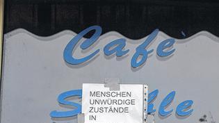 Vor dem Haus in der Egerländer Straße hängen seit Tagen mehrere große Plakate. Auf denen stehen Sätze wie: „Wir möchten auch gerne duschen.“ Oder: „Menschenwürdige Zustände auch für Menschen wie uns.“