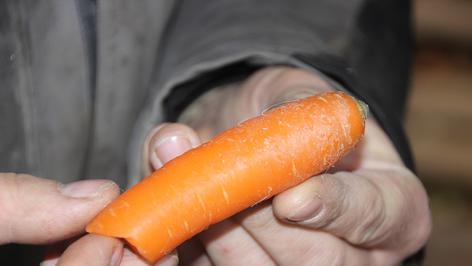 “ Dazu gehörte der Kauf moderner Gemüse-Wasch- und Sortiermaschinen. Sogar eine Polieranlage gibt es – „das ist eine optische Geschichte; die Kunden wollen, dass die Karotten richtig glänzen“, berichtet Fridolin Geiger.