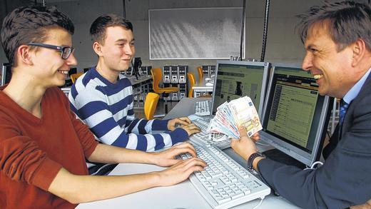 Dafür bieten die Sparkassen eine Software an, mit der man online rasch die Zahl der Aktien ändern und den jeweiligen Preis vergleichen kann. Die Schüler hingen also erst einmal fasziniert am Bildschirm.