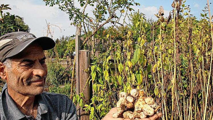 Zwar blüht der Schwammkürbis schön, aber die Früchte, die als Massage- und Badeschwamm Verwendung finden, sind doch sehr klein ausgebildet. Die Pflanze kennt Hassan aus seiner Heimat, hat ein paar Samen hier einfach mal in den Boden gesteckt. „Wahrscheinlich muss es noch länger warm bleiben“, meint er. Der Herbst hält in Kitzingen halt doch früher Einzug als in El-Huwayder. „Jeder kann anbauen, was er möchte“, erklärt Astrid Glos das Prozedere in den Internationalen Gärten. Nur Bäume sind nicht erlaubt. Manche Nutzer haben in diesem Jahr Zäune um ihre Parzelle errichtet. Die müssen im Herbst wieder abgebaut werden. Bei Hochwasser stellen sie eine unzulässige Barriere dar.