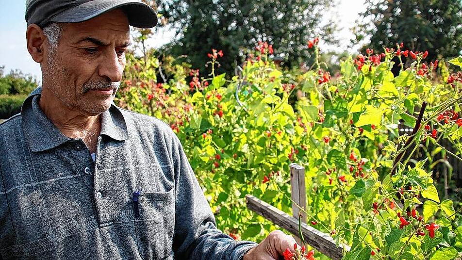 Hassan Abdolzahra ist sichtlich zufrieden. Stolz blickt er über sein kleines Reich nahe des Mainufers in Etwashausen. Die Tomaten sind reif, der Luffa blüht und es duftet überall nach frischen Kräutern.