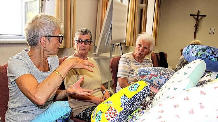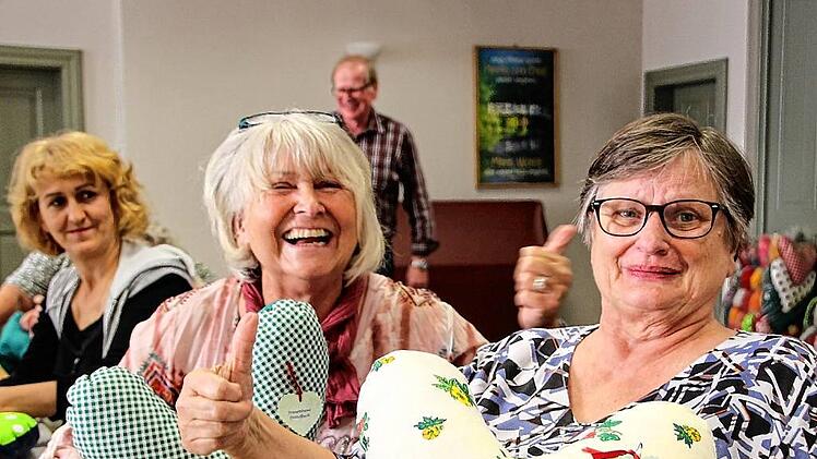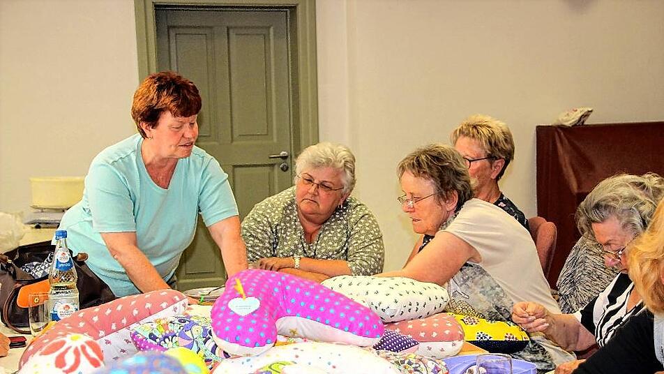 „Er hat mir schon ganz am Anfang beim Zuschneiden geholfen und dann auch eine stabile Schablone gebastelt“, ergänzt Marianne Schilling. Die Stoffe und sämtliche Materialien haben sie selbst und ihre KDFB-Kolleginnen privat zusammengetragen. Vieles wurde gespendet. „Man erlebt schon schöne Dinge, wenn man so eine Aktion macht“, resümiert Marianne Schilling. Gleich zu Beginn des Nähprojekts, im Januar, musste sie ihre Nähmaschine nach Haßfurt bringen, weil sie plötzlich nicht mehr funktionierte. Als der dortige Reparateur hörte, wofür die Maschine gebraucht wird, verzichtete er auf die Rechnung. „Er meinte zwar, das Ding habe ihm einige Nerven gekostet, aber er habe selbst eine Verwandte durch Krebs verloren und wolle unser Projekt unterstützen“, erinnert sich Marianne Schilling. „Was glauben Sie, wie sehr mich das gefreut hat!“
