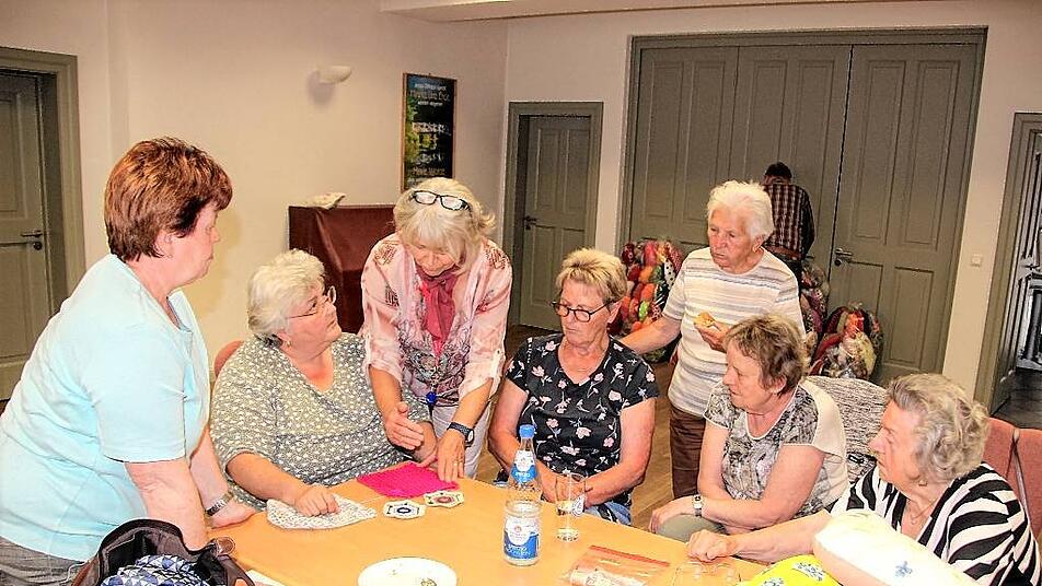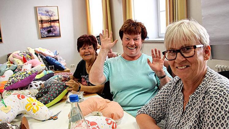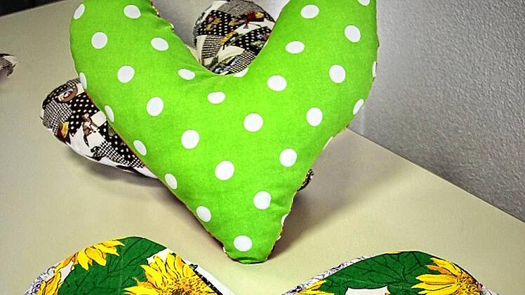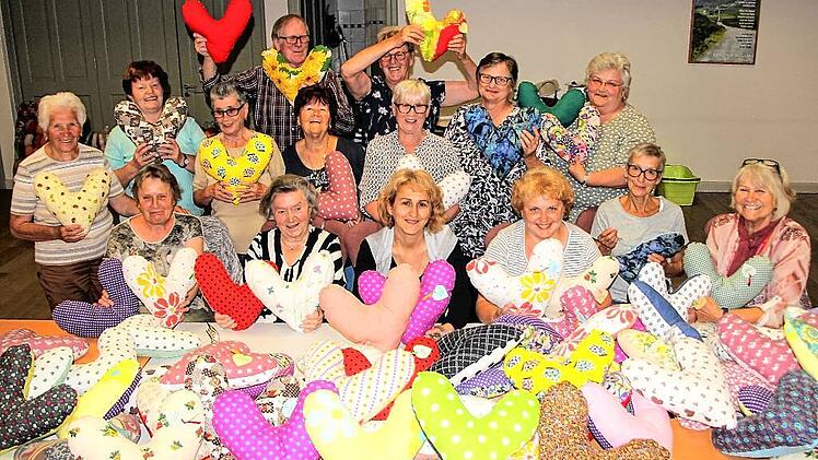 Gemeinsam mit den anderen Frauen sitzt Sieglinde Zehenter rund um den Tisch und vernäht die letzten Herzkissen-Fülllöcher für heute. „Aus den Stoffresten kann man Lavendel-Mäuse machen“, sagt Marianne Schilling, „die können wir dann an Maria Himmelfahrt beim Kräuterbüschelmarkt verkaufen.“