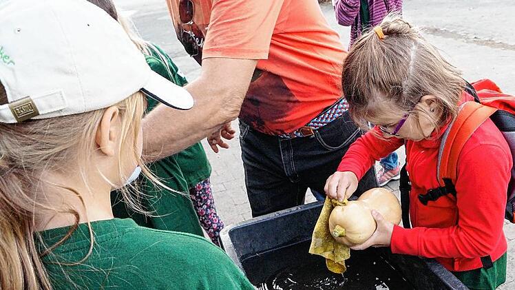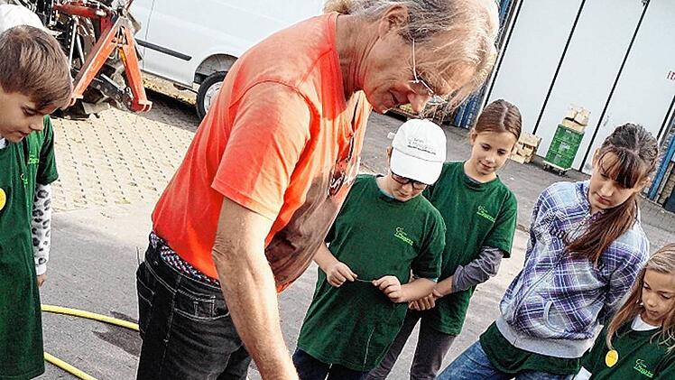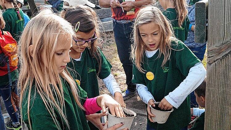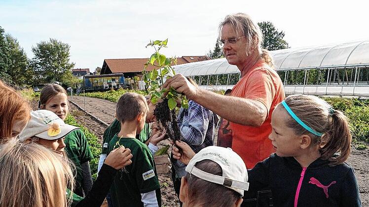 Mit großen Augen schauen die Kinder auf die Hand von Veit Plietz. „Auf einer Fingerspitze Boden“, sagt er und streckt den Zeigefinger in die Höhe, „leben mehr Lebewesen als Menschen auf der Erde“. Bevor er mit den Kindern über Pflanzen redete, ging es erst einmal um das, worin die Pflanzen wachsen – den Boden nämlich, und was dort so alles kreucht.