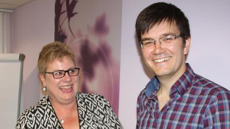 Stefanie Dietsch ist Altenpflegerin und seit ein paar Wochen die „Arbeitsplatzpatin“ von Reinhold Broscheit. „Er hat mich ausgewählt“, erzählt sie. 17 Arbeitsplatzpaten gibt es schon in den Landkreisen Main-Spessart, Würzburg und Kitzingen, in denen das Projekt installiert ist. Am Ende des Jahres sollen es 30 sein“, kündigt Leube an. Weil die Vorteile auf der Hand liegen.