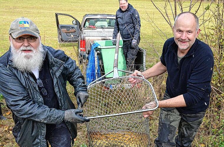 Alle drei Jahre trommeln Tietz und von Rotenhan Freunde und Familienmitglieder zusammen, denn das Abfischen ist so etwas wie ein Herbstfest für alle – und helfende Hände sind zudem sehr willkommen. „Man muss einfach regelmäßig schauen, was sich unter Wasser so getan hat und was dem Hobbyangler entgangen ist“, begründet Klaus Tietz die Trockenlegung. „Wir machen quasi Inventur.“