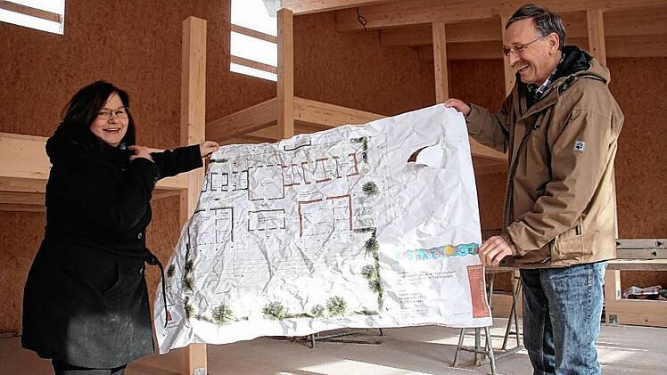 Es geht was voran, in der Memellandstraße in der Kitzinger Siedlung. Von außen sieht der Anbau an den St. Vinzenz-Kindergarten, Außenstelle Sonnenschein, schon ganz gut aus. Und von innen wird es bis zum Start des neuen Kindergartenjahres im September auch werden. Dorothea Graber und Klaus Rützel sind davon überzeugt.
