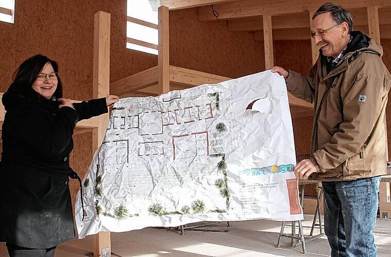 Den Anbau hat Geiger quasi spiegelbildlich zum bestehenden Kindergarten geplant. Ausnahme: Ein rund 60 Quadratmeter großer Mehrzweckraum, ein Elternsprechzimmer und ein Behinderten-WC. „Bei zwei Gruppen wird ein zusätzlicher Raum für Bewegungsmöglichkeiten gefordert“, erklärt Dorothea Graber. 25 Kinder können in dem Neubau betreut werden – genau so viele wie im Altbau. Sie werden in hellen und gemütlichen Räumen spielen können.