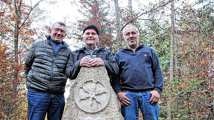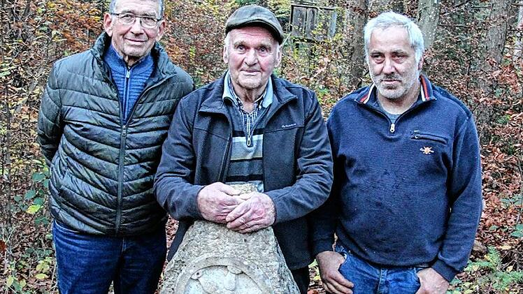 Hans Hüßner und Paul Schatz sind Feldgeschworene, sogenannte Siebener. Die gestandenen Männer aus dem Casteller Ortsteil Wüstenfelden kennen die Flur so gut wie kaum jemand sonst. Schon als Hüßner und Schatz noch ganz jung waren, wussten sie um den verwitterten kleinen Felsen zwischen Wüstenfelden und Ziegenbach. Überwuchert von wilden Brombeeren und anderen Sträuchern, war der etwa 60 Zentimeter hohe Stein ein stummer Zeuge einer längst vergangenen Untat.