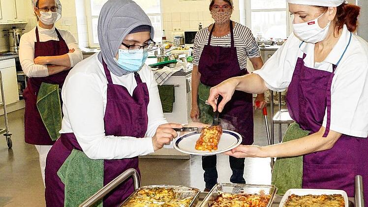 Für manche Schülerin ist es das erste Mal, dass sie selbst mit Kichererbsen kocht, bei anderen kommen diese und andere Hülsenfrüchte häufig zum Einsatz. Bei Elke Reischl zum Beispiel, die im Unterricht unter anderem Rote Linsensoße mit Knusperkartoffeln und Ei zubereitet. Sowohl daheim als auch bei der Arbeit in einer Großküche kommen Hülsenfrüchte häufig auf den Tisch. „Kinder lieben Rote-Linsen-Schnitzel“, erzählt sie. Die sehen aus wie Schnitzel, sind aber kein Fleisch.