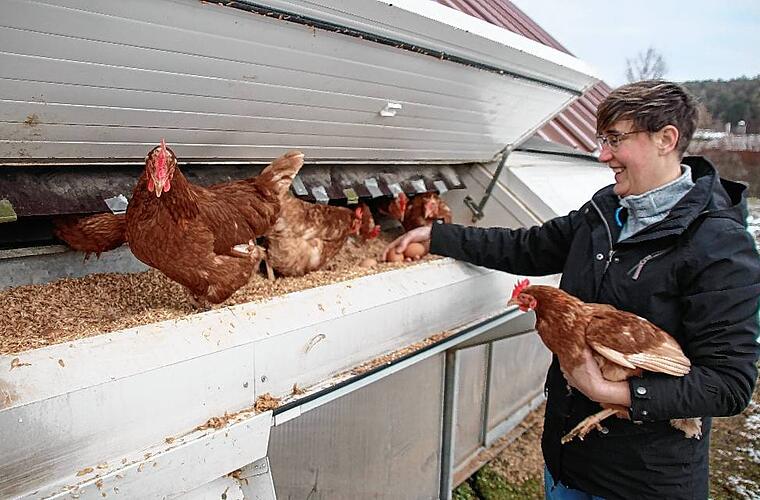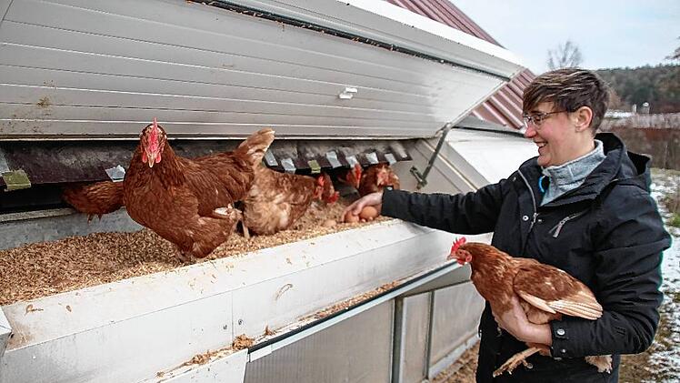 Familie Dengel lebt am Ortsrand von Neubrunn, Landkreis Würzburg. 1800 Einwohner hat der Ort, etwa 600 Haushalte. Im Frühjahr 2018 hat die junge Landwirtin die Werbetrommel für ihr Projekt gerührt, Flyer verteilt, den Kindergarten zu einem Erlebnistag rund um die Hühner eingeladen. „Man muss aktiv sein, sich präsentieren, die Kunden anlocken“, sagt sie. Mit der bisherigen Resonanz ist sie zufrieden. An den Wochenenden ist sie meistens ausverkauft, unter der Woche könnte die Nachfrage noch etwas größer sein.