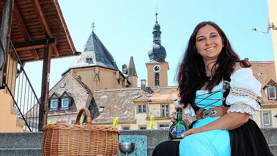 Augen wie grüner Samt, Haare schwarz wie Ebenholz. Die neue „Kitzinger Käther“ ist jung und schön anzusehen. Auf den ersten Blick hat sie nichts gemeinsam mit der alten, knorrigen Frauenfigur aus dem Historienspiel. Und doch: Michelle Krämer mimt das Kätherle so, wie die Kitzinger ihre Ureinwohnerin kennen und lieben. Sie nimmt kein Blatt vor den Mund, aber gern einen Krug Wein.