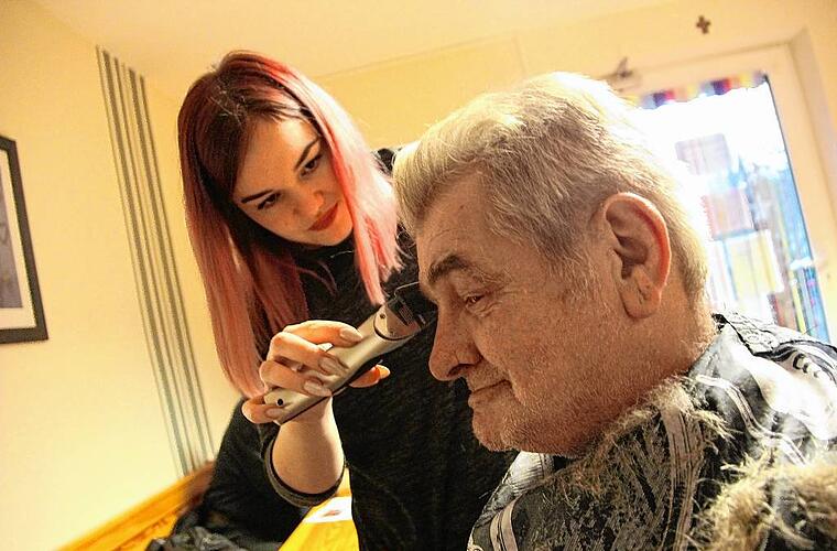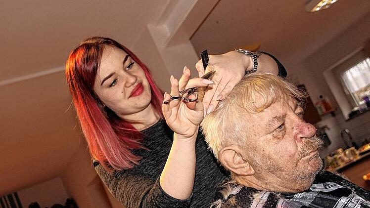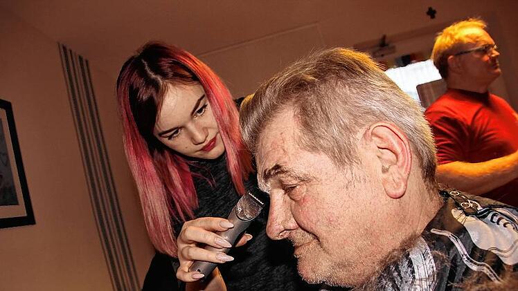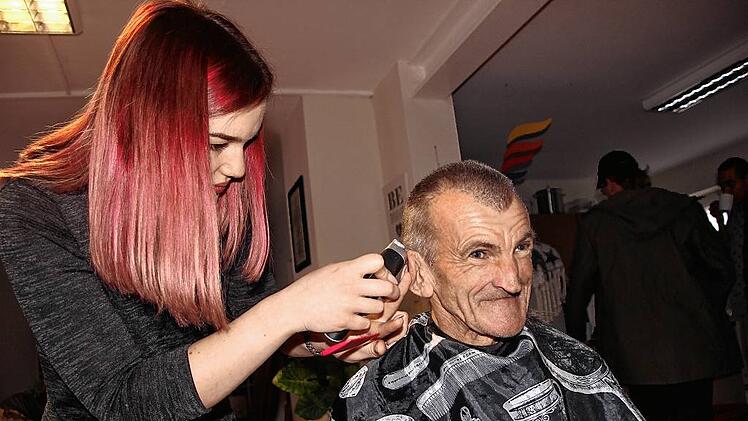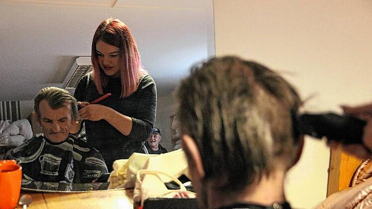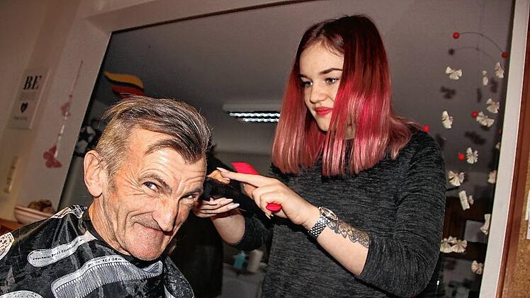Einer der Plätze wird heute allerdings leer bleiben. „Jenny ist richtig krank“, sagt Lisa-Marie Funk bedauernd. Die 22-jährige Friseurin aus Kitzingen-Etwashausen und ihre Freundin Jenny Wieser bestreiten die Montagnachmittage im Wegweiser normalerweise gemeinsam. Doch heute muss Lisa-Marie alleine ran. Sie beruhigt die enttäuschten Gesichter, die befürchten, wieder weggeschickt zu werden: „Ich bleibe länger. Wir schaffen euch schon alle!“