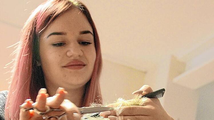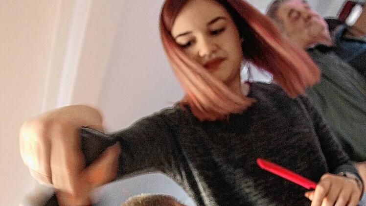 Lisa-Marie hat unterdessen ihre erste „Kundin“, eine junge Frau, schon fast fertig. „Wie schneiden wir den Pony?“, fragt sie. „Wie immer ganz gerade?“ Schüchternes Nicken. Und zum Abschied wenig später ein leises „Vielen Dank!“.