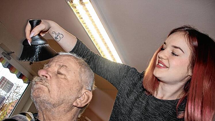 Die meisten kommen mit gewaschenen Haaren her. „Manche duschen auch vorher direkt hier im Wegweiser“, berichtet die Friseurin. Grundsätzlich sei es ihr egal, ob sie nass oder trocken schneidet, sagt Lisa-Marie. Friseurin zu werden, das war seit Kindertagen ihr Traumberuf. Vor einem Jahr hat sie ausgelernt und arbeitet nun im Salon „Haargenau“ in Volkach. Zuvor hat sie in Kitzingen bei Friseurmeisterin Astrid Lalomia gelernt. Lalomia war es auch, die vor gut zwei Jahren den Zeitungsaufruf las, dass die Ehrenamtlichen des Wegweisers sich über Friseurinnen für ihre Schützlinge freuen würden. „Sie hat Jenny und mir davon erzählt und wir waren uns gleich einig, dass wir das probieren wollen.“