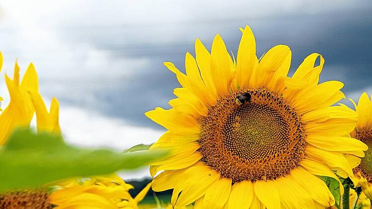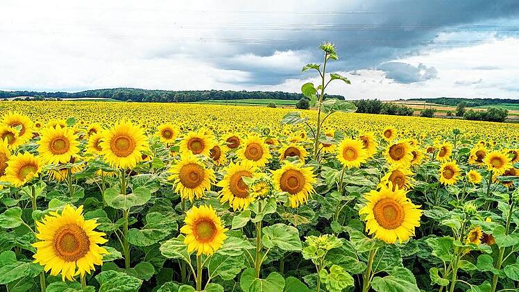 Sehen, hören, schmecken: Die Sonnenblumen im Raum Kitzingen erfreuen die Sinne auf vielfache Art. Die leuchtend gelben Blütenblätter setzen in diesen Tagen bunte Farbtupfer in die Landschaft, die riesigen Köpfe werden von brummenden und summenden Insekten umschwirrt. Und schon in wenigen Monaten entsteht aus den Kernen ein gesundes Öl.