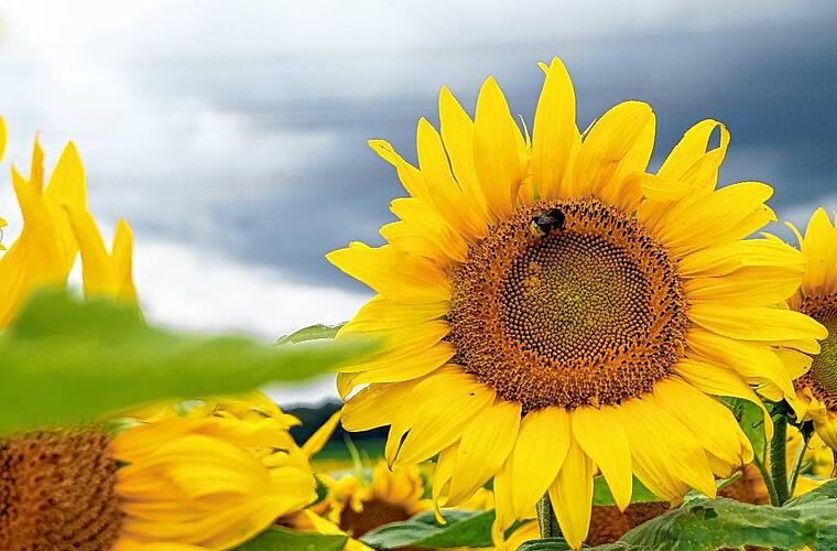 Sehen, hören, schmecken: Die Sonnenblumen im Raum Kitzingen erfreuen die Sinne auf vielfache Art. Die leuchtend gelben Blütenblätter setzen in diesen Tagen bunte Farbtupfer in die Landschaft, die riesigen Köpfe werden von brummenden und summenden Insekten umschwirrt. Und schon in wenigen Monaten entsteht aus den Kernen ein gesundes Öl.