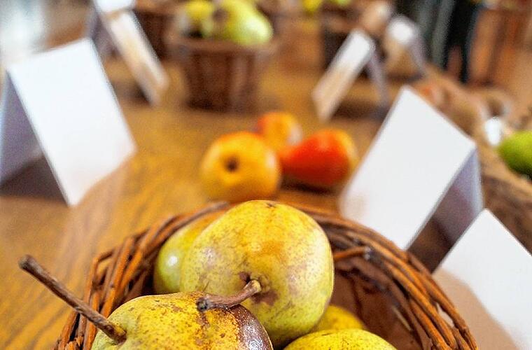 Rund um Herrnsheim ist diese Vielfalt noch gegeben. An den teils über 100 Jahre alten Bäumen wachsen ganz verschiedene Sorten. Steffen Kahl geht von Baum zu Baum, pflückt ein Stück Obst, erklärt die Besonderheiten beispielsweise von Jakob Lebel, Raafs Liebling und dem Purpurroten Cousinot bei den Äpfeln, von Hänser, der Köstlichen aus Charneux und der Nordhäuser Winterforelle bei den Birnen.