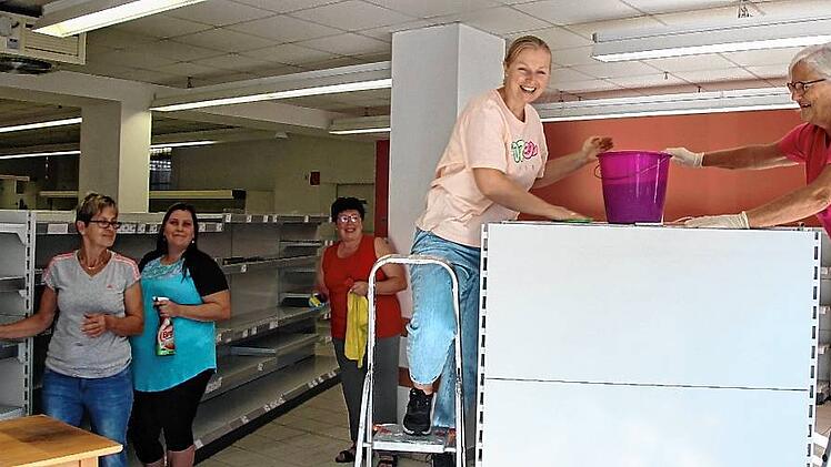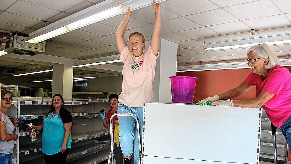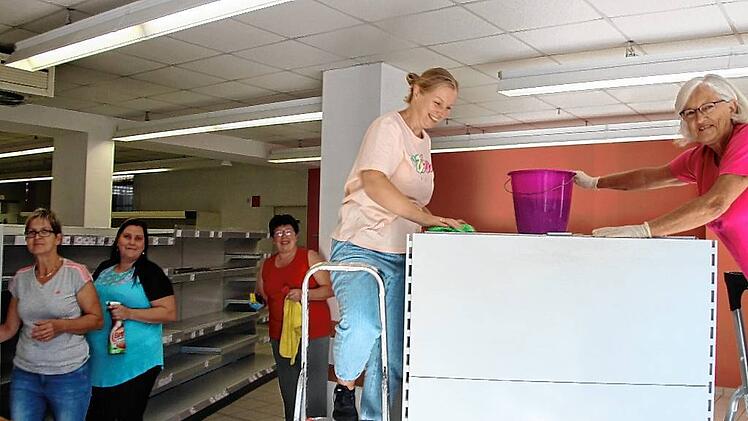 Wer aktuell an der Kleinlangheimer Straße 1 vorbeikommt, staunt über emsiges Treiben. Zwei Cousinen – Christiane Pötzl (30) und Claudia Djuren (37) aus dem Wiesenbronner „Wehrwein-Clan“ – werden das Geschäft künftig gemeinsam leiten und sind schon jetzt tagtäglich vor Ort. Zusammen mit vielen freiwilligen Helfern haben sie die Wände gestrichen, die Fenster geputzt und die Regale geschrubbt. Und es ist noch jede Menge zu tun bis zur Neueröffnung des Ladens, in dem es – wie gehabt – nicht nur Lebensmittel und Alltagsgegenstände geben wird, sondern auch frische Bäcker- und Metzgerwaren (Brönner und Bausewein), eine Postfiliale und – das ist neu – wohl sogar eine kleine Kaffee-Ecke, „falls wir die Genehmigung dafür bekommen“.
