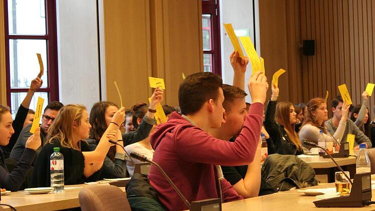 Schon zum 22. Mal lud der Kreistag Kitzingen Schüler aus dem Landkreis zu einer eigenen Sitzung ein. Dort können sie sich Gehör verschaffen und Themen vorbringen, die sie beschäftigen. Die beiden Fragen in diesem Jahr lauteten: „Sollten Schüler im Unterricht das eigene Smartphone oder Tablet benutzen dürfen?“ und „Die Schule ist geschafft! Was hilft bei der richtigen Berufswahl?“