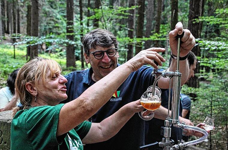 Mitten im Wald, am alten Drei-Franken-Stein, probieren Unter-, Mittel- und Oberfranken erstmals ihr grenzübergreifendes Gebräu.