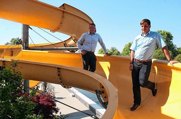 Peter Zimmermann ist für die Firma Schauer & Co. aus Lindau als Betriebsleiter von aqua-sole und Freibad vor Ort. Seit 1. Mai läuft der Vertrag, und der gelernte Bademeister musste einen Horror-Start erleben: Schließung, Kurzarbeit, keine Öffnung in Sicht. „Viel mehr braucht es nicht, um seine Mitarbeiter in Panik zu versetzen“, weiß Rebecca Hick. Auch wenn sie ausschließlich für die Immobilien der Kitzinger Baugesellschaft mbH verantwortlich ist, sieht sie es als ihre Aufgabe an, in dieser komplizierten Kennenlernphase zu vermitteln.