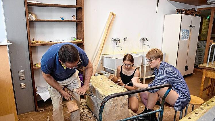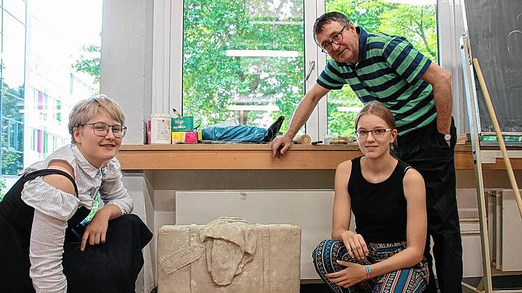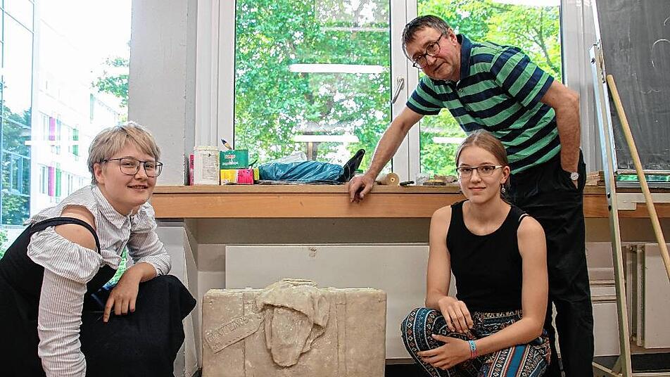 . „Alle Beteiligten sprachen sich dafür aus, Jugendliche in das Projekt einzubinden“, erinnert sich Knobling. Es lag nahe, die sechs Schülerinnen des diesjährigen Kunstadditums am AKG einzubinden. Und so machten sich Linda Öttinger, Luca Plomitzer, Charlotte Drenkard, Anneliese John, Maren Fahmer und Laura Schultheis an die Arbeit. Zwei Koffer mussten aus Betonguss modelliert werden. Einer für das Würzburger Denkmal, einer für den Kitzinger Rosengarten.