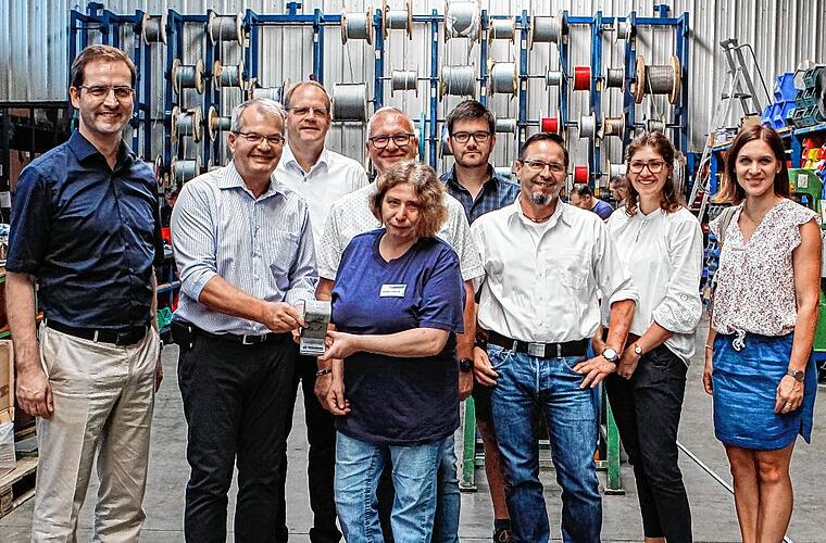 „Natürlich geht es hier um einen sozialen Aspekt“, meinte Bernhard Etzelmüller bei der kleinen Feier anlässlich der 100. Kooperation. Aber das sei längst nicht alles. „Wir profitieren auch als Unternehmen von dieser Zusammenarbeit“, betonte der Geschäftsführer. Die Qualität der Mitarbeiter von den Mainfränkischen Werkstätten sei „top“, Sandra Hennig motiviert bei der Sache. „Qualität und Pünktlichkeit stimmen“, lobte Etzelmüller. „Kurzum, es gibt nichts zu motzen.“