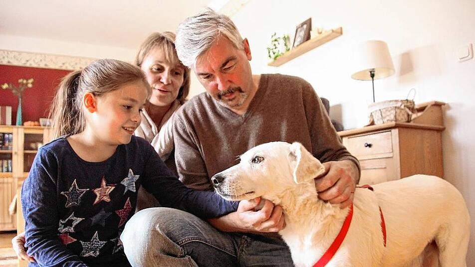 Eigentlich wollten die Stephans nach Connys Tod erst einmal eine Hunde-Pause machen“, erzählt Peter Stephan. Doch dann erhielt er im August eine Mail von Iris von Crailsheim. Sie erzählte von Viktor, einem weißen Labrador-Mix, der aus einer Tötungsstation in Rumänien gerettet wurde und nun seit einem halben Jahr im Kitzinger Tierheim lebt. Viktor werde vom Tierarzt auf neun Jahre geschätzt und sei ein sehr netter Hund, schrieb die Tierschützerin; er tue allen im Tierheim leid.