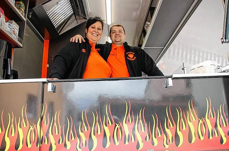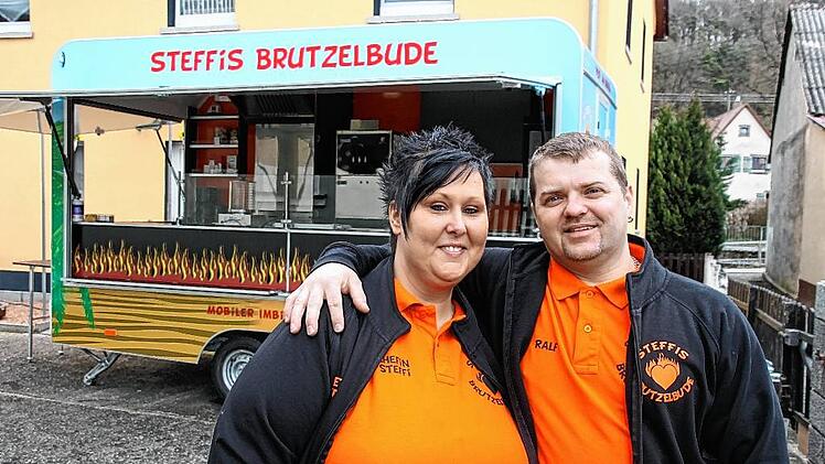 Fünf Mal hat sie direkt mit Eugen Volbers gesprochen, noch viel häufiger telefoniert und Emails ausgetauscht. „Er war wirklich für uns da“, schwärmt sie. Parallel zu den Operationen wurde ein tragfähiges Geschäftsmodell entwickelt und ein Businessplan geschrieben, um die Bank von einem Kredit und die Agentur für Arbeit von einem Gründungszuschuss überzeugen zu können. Am Anfang des Prozesses stand die Frage im Raum, ob das Konzept überhaupt sinnvoll und tragfähig ist. „War es nicht“, sagt Steffi Astalosch und muss bei der Erinnerung grinsen. „Wir wollten viel zu viel.“ Hähnchenbude, Dönerbude, Bratwurstbude, Eisverkauf: Die Astaloschs wollten eine Art Gemischtwarenladen in ihrer Imbissbude. Der Rat von Eugen Volbers lautete: lieber weniger, aber dafür hohe Qualität. „Den Rat haben wir umgesetzt“, sagt Steffi Astalosch. Bratwurst soll es geben, Steaks, Hamburger und Curry-Wurst auf Berliner Art. „Wir sind im Speckgürtel von Berlin aufgewachsen“, erklärt Ralf Astalosch. Seit etwa 20 Jahren leben die beiden mit ihren drei Kindern im Geiselwinder Ortsteil Füttersee. Ralf arbeitet im Drei-Schicht-Dienst. Am Wochenende will er trotzdem mit anpacken. „Die Kinder auch“, freut sich Steffi Astalosch. Am Samstag, 21. März, startet das Abenteuer mit der Eröffnung im eigenen Hof. Das Gesundheitsamt hat, trotz der Corona-Krise, grünes Licht gegeben. Alle Neugierigen und Nachbarn sind zwischen 12 und 21 Uhr eingeladen. „Die fragen sich ja schon seit ein paar Tagen, was da für ein Wagen in unserem Hof steht“, weiß Ralf Astalosch. „Steffis Brutzelbude“ ist nicht nur zweckmäßig eingerichtet – inklusive hochwertiger Softeis-Maschine –, sondern auch ein optischer Hingucker. „Die Bemalung und Beschriftung haben wir uns ausgedacht“, sagt Steffi Astalosch stolz. In der nächsten Woche starten die Einsätze. Zwei Mal in der Woche wird sie in Wiesentheid stehen, zwei Mal in der Woche in Dettelbach. Am Montag ist Ruhetag und an den Wochenenden wollen die beiden an Geburtstagen, Hochzeiten oder sonstigen Feierlichkeiten und Veranstaltungen für möglichst viele Gäste brutzeln. „Wir haben schon ein paar Buchungen“, freut sich Steffi Astalosch und hofft – trotz Corona – auf möglichst viele Veranstaltungen, bei denen sie präsent sein kann. „Gesundheitlich müsste alles klappen“, versichert sie. Im Imbisswagen kann sie sich bewegen, auch mal auf einem Hocker Platz nehmen und muss nicht schwer heben. „Mit den Ärzten ist das abgeklärt.“