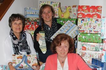 Es ist wie ein Zeitsprung. Draußen ist Frühherbst. Drinnen Weihnachten. Dutzende Pakete liegen im Wohnzimmer bereit, als stünde die Bescherung unmittelbar bevor. „Die sind aber noch nicht gefüllt!“, sagen Renate Strung und Maria Fast wie aus einem Mund. Eine fleißige Helferin hat nur schon mal zahlreiche Schuhkartons mit Weihnachtspapier beklebt. Die hübschen Kisten werden in den nächsten Wochen mit Gutem und Nützlichem bepackt. Mitte November gehen sie auf die Reise zu Not leidenden Kindern.