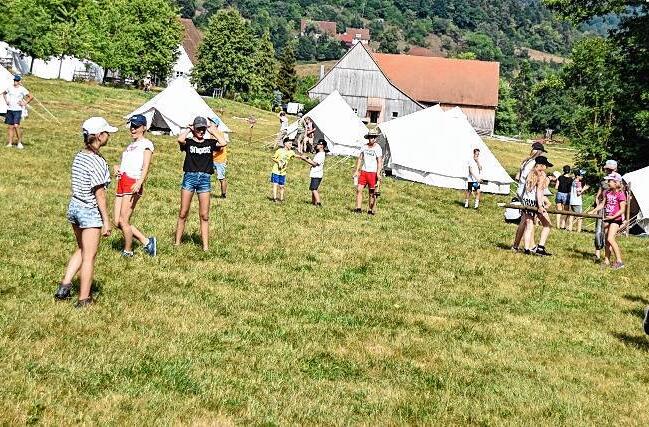 Natürlich haben die Zehnjährigen auch den nächtlichen Überfall nicht vergessen, der bei keinem Zeltlager fehlen darf. „Wir haben versucht, die Cowboys, die uns überfallen haben, zu fangen und ans Lagerfeuer zu tragen“, erzählen sie. „Wir haben vorher geübt, wie man so einen Überfaller überwältigt“, sagt Luisa Moser lachend. Fast alles hat im „Ernstfall“ auch geklappt, nur zwei Zelte wurden in all der Aufregung nicht richtig bewacht und die wurden dann tatsächlich eingeworfen. Also blieb nichts anderes übrig, als sie nachts wieder aufzubauen. Weil aber viele Hände mitangepackt waren, standen die Zelte schnell wieder.