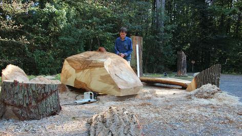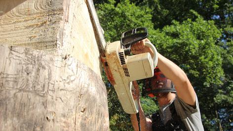 Der Wald. Ein Ort, an den man sich zurückzieht, wenn einem das Leben zu laut wird. Ein Ort, an dem man das Rauschen des Windes spürt, Tierstimmen hört, geheimnisvolle Geborgenheit fühlt. Der Wald ist aber auch ein genialer Ort zum kreativen Arbeiten. Das jedenfalls finden fünf Bildhauer, die derzeit auf dem Friedrichsberg dicke Holzstämme in Kunstwerke verwandeln.