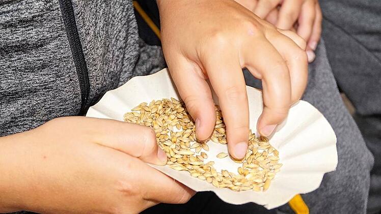 Über die Anbaufläche erfahren sie, dass 90 Hektar ungefähr so viel sind wie 110 Fußballfelder. Sie lernen, dass die Menschen früher Jäger und Sammler waren und warum sie mit den Anbau von Feldfrüchten begannen. Wie der Mensch früher die ganze Kuh verwendete, dazu haben die Kinder selbst viele Ideen: Fleisch und Milch, Fell, Leder, Hörner und Knochen wurden genutzt.