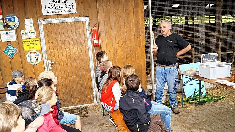 Das war lange nicht mehr zu hören: Laut hallt ein Chor aus vielen fröhlichen Kinderstimmen über den Hof bis in den Kuhstall der Landwirtsfamilie Drobek in Willanzheim. Nach langer Corona-Pause ist endlich wieder Unterricht außerhalb des Klassen- oder gar heimischen Kinderzimmers möglich. Alle Beteiligte sind froh darüber.