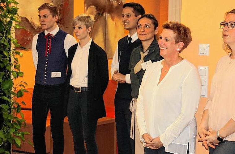 Mit Argusaugen werden sie beobachtet. Jeder Griff, jede Geste, jedes Lächeln muss sitzen. Kein Wunder, dass die vier Prüflinge in den Berufen Hotelfachmann/frau beziehungsweise Restaurantfachmann/frau aufgeregt sind. Nach eineinhalb Stunden können sie durchatmen. Die Anstrengungen haben sich gelohnt. Jetzt steht ihnen die Welt offen.