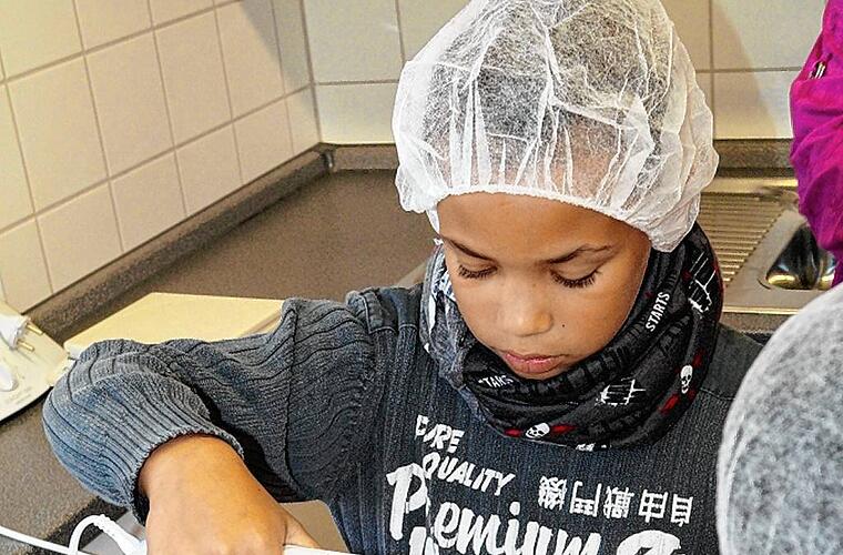 Bevor es an die praktische Arbeit ging, wurden zunächst die Regeln aufgestellt: Gut Hände waschen, die Haare unter einem Netz verbergen, damit sie nicht im Joghurt oder der Butter landen, die Finger nicht abschlecken und nicht in der Nase bohren. „Es sollen ja keine Bakterien in das Produkt rein“, erklärte die Labormeisterin.